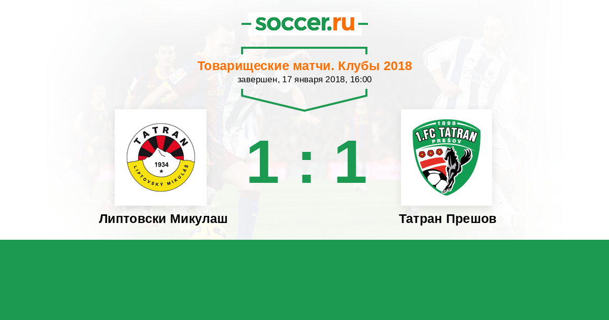 История матча Липтовски Микулаш против Татран Прешов