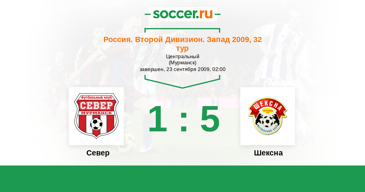 Россия. Вторая лига. Группа 2 11.06.2009 Шексна Логотип футбольный клуб Шексна (Череповец) 2:3 Логотип футбольный клуб Север (Мурманск) Север
