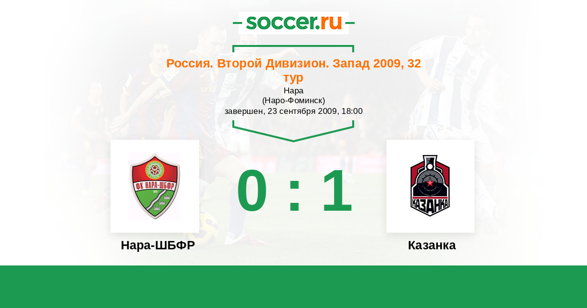 Россия. Вторая лига. Группа 2 19.09.2010 Текстильщик   1:0 Логотип футбольный клуб Нара-ШБФР (Наро-Фоминск) Нара-ШБФР