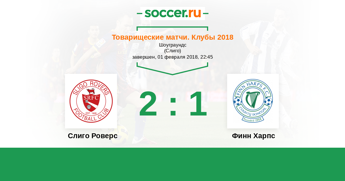 Ирландия. Премьер-лига 01.03.2019 Финн Харпс Логотип футбольный клуб Финн Харпс (Баллибофи) 1:2 Логотип футбольный клуб Слиго Роверс Слиго Роверс