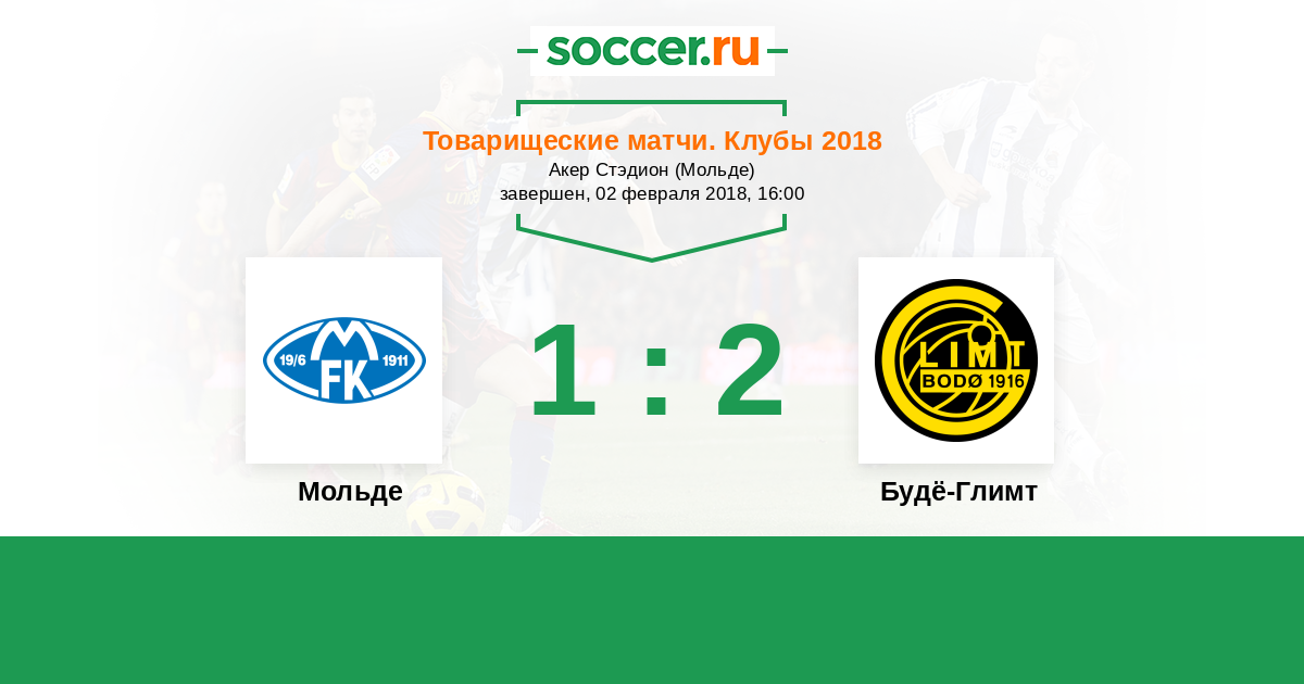 Товарищеские матчи. Клубы 17.02.2017 Мольде Логотип футбольный клуб Мольде 0:2 Логотип футбольный клуб Будё-Глимт Будё-Глимт