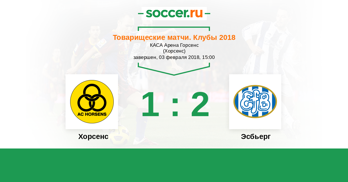 Товарищеские матчи. Клубы 17.01.2017 Хорсенс Логотип футбольный клуб Хорсенс 1:2 Логотип футбольный клуб Эсбьерг Эсбьерг