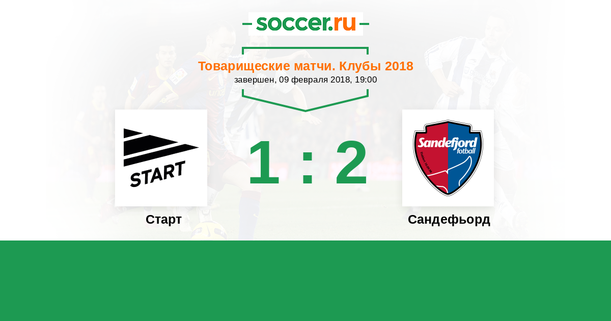Товарищеские матчи. Клубы 05.03.2016 Старт Логотип футбольный клуб Старт (Кристиансанд) 0:2 Логотип футбольный клуб Сандефьорд Сандефьорд