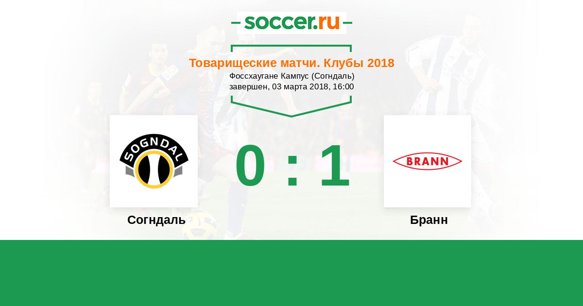 Товарищеские матчи. Клубы 23.03.2019 Бранн Логотип футбольный клуб Бранн (Берген) 3:0 Логотип футбольный клуб Согндаль Согндаль