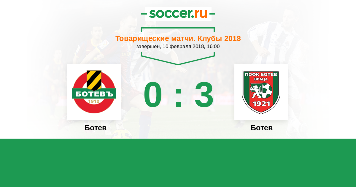 Товарищеские матчи. Клубы 04.07.2018 Ботев Логотип футбольный клуб Ботев (Пловдив) 1:0 Логотип футбольный клуб Ботев (Враца) Ботев