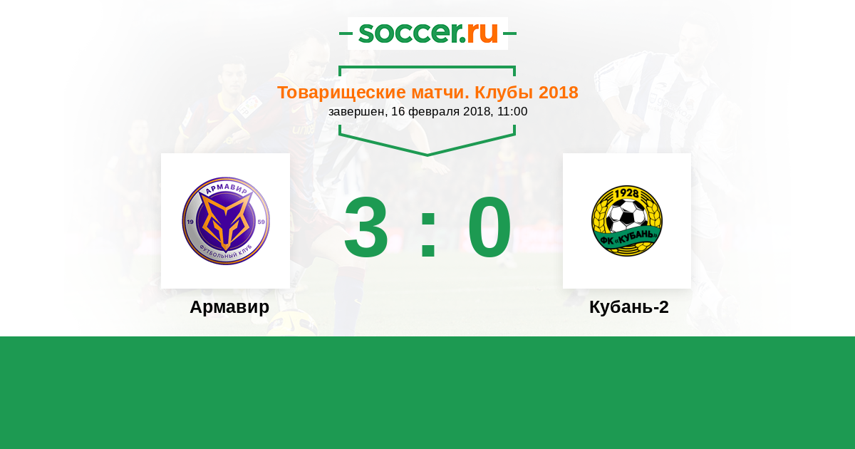 Россия. Вторая лига. Группа 1 12.03.2017 Армавир Логотип футбольный клуб Армавир 2:0 Логотип футбольный клуб Кубань-2 (Краснодар) Кубань-2