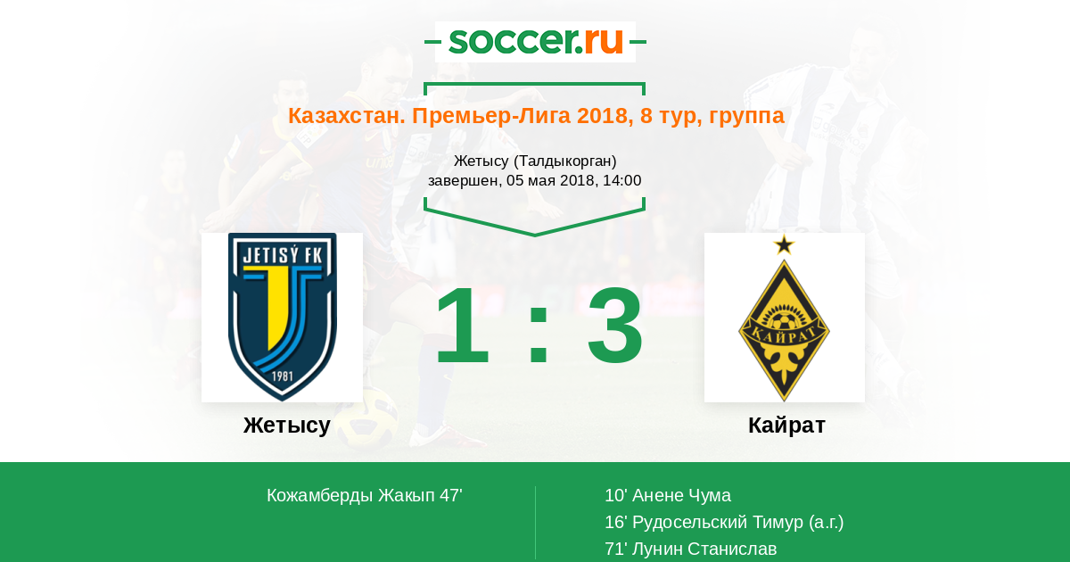 Протокол матча Жетысу против Кайрат