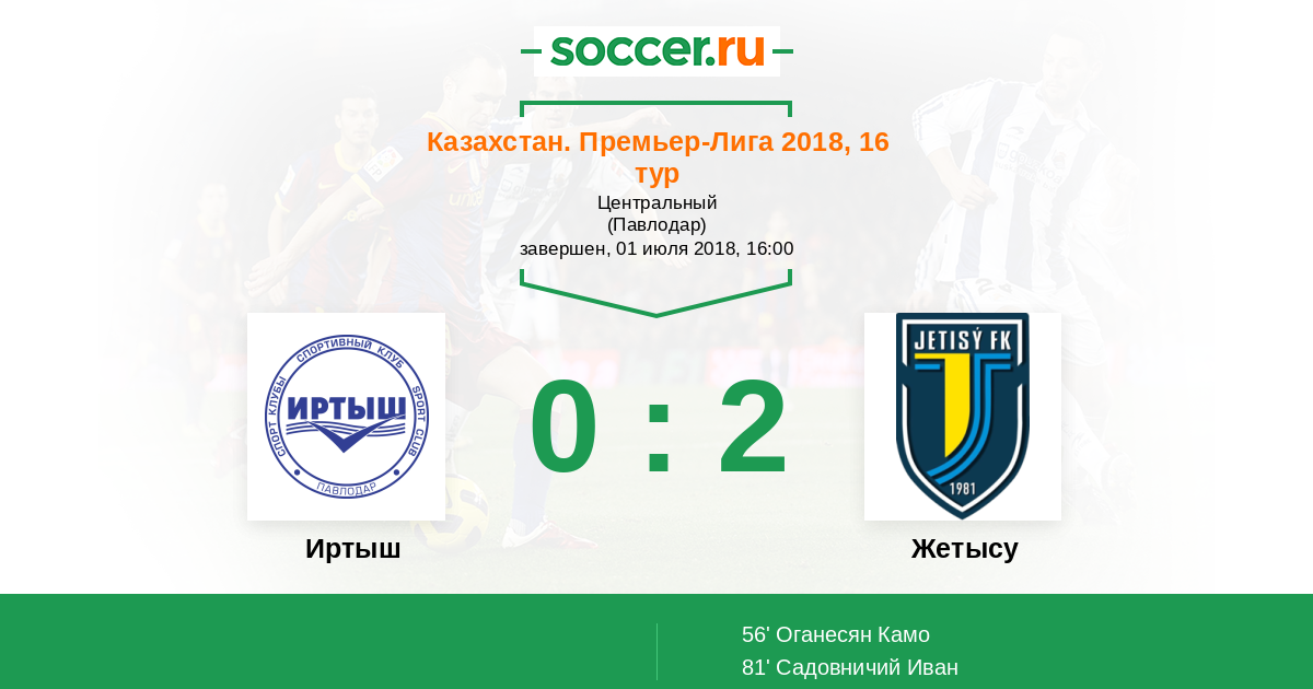 Протокол матча Иртыш против Жетысу