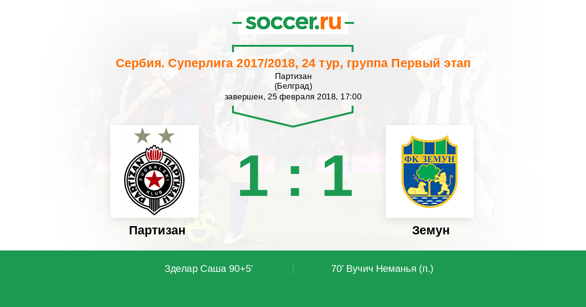 Протокол матча Партизан против Земун