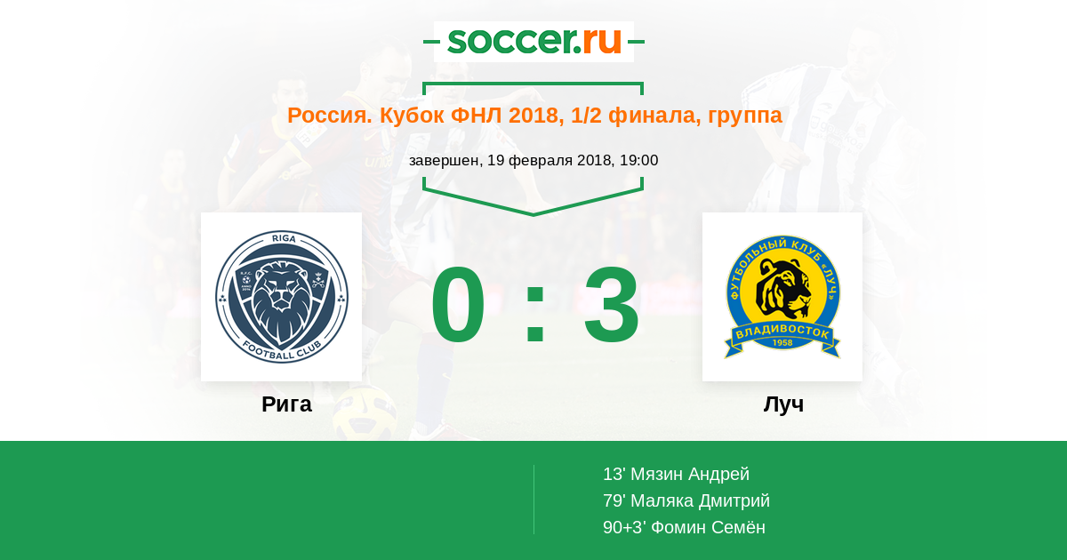 Протокол матча Рига против Луч