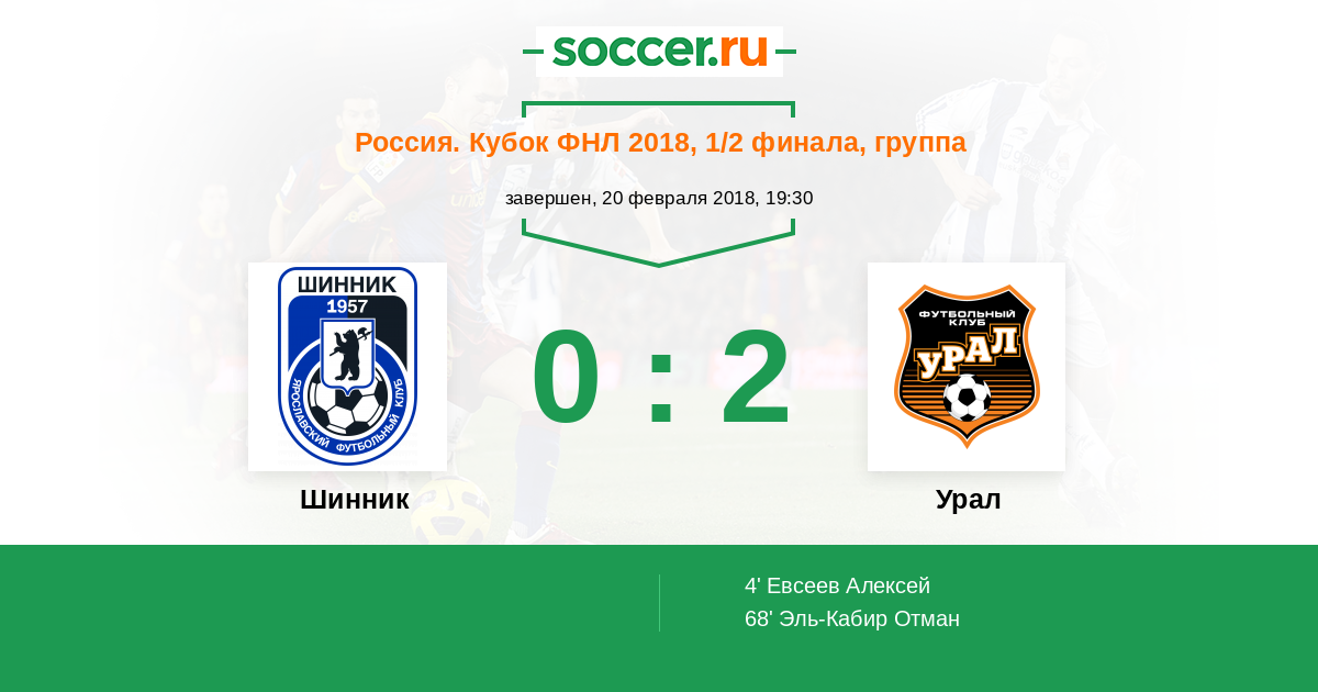 Протокол матча Шинник против Урал