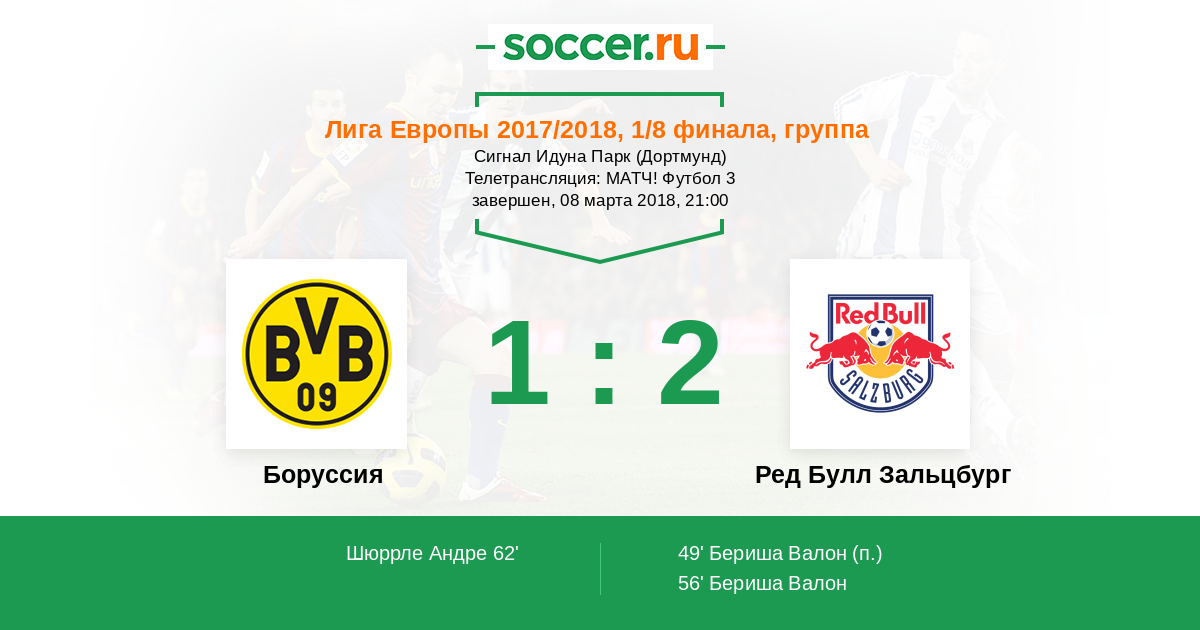 Протокол матча Боруссия против Ред Булл Зальцбург
