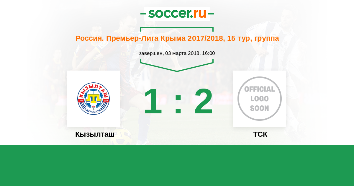 Россия. Премьер-Лига Крыма 21.04.2018 ТСК Логотип футбольный клуб ТСК (Симферополь) 2:0 Логотип футбольный клуб Кызылташ (Бахчисарай) Кызылташ