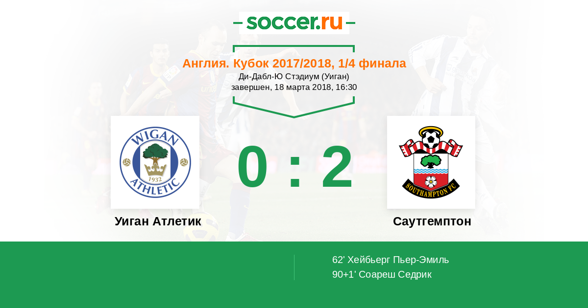 Отлично полуфинал....соккер мог бы написать Саутгемптон бьет Уиган который похоронил МС и выходит в полуфинал......а то получается МЮ и Тоттенхэм достойны новости, а святые нет.
