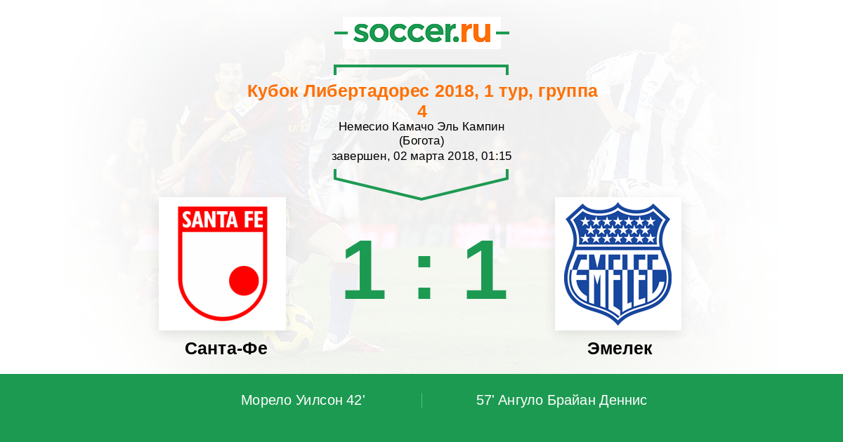 Протокол матча Санта-Фе против Эмелек