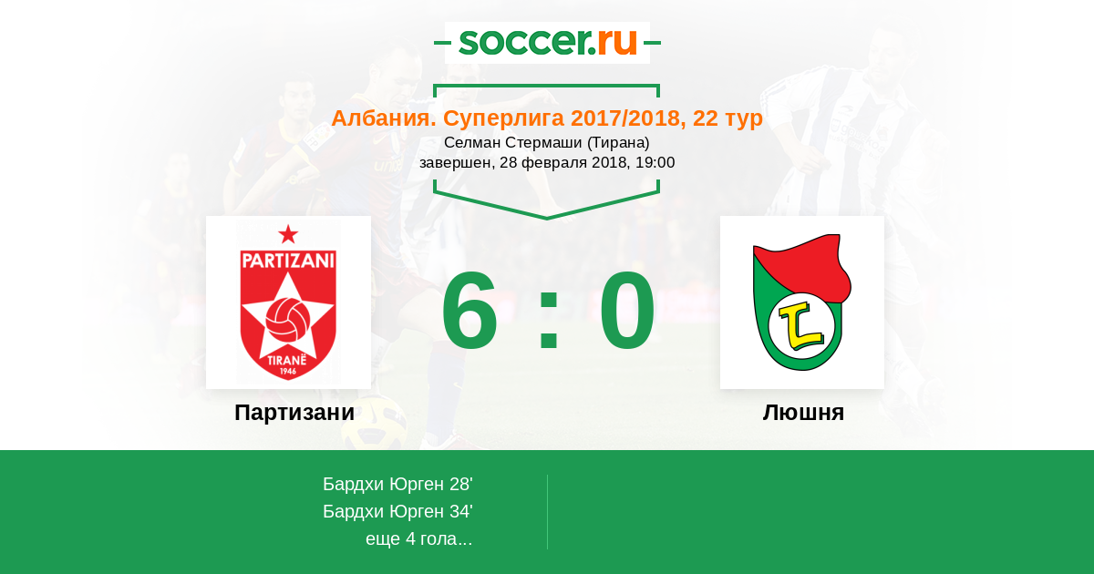 Протокол матча Партизани против Люшня