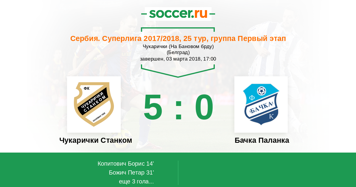 Протокол матча Чукарички Станком против Бачка Паланка