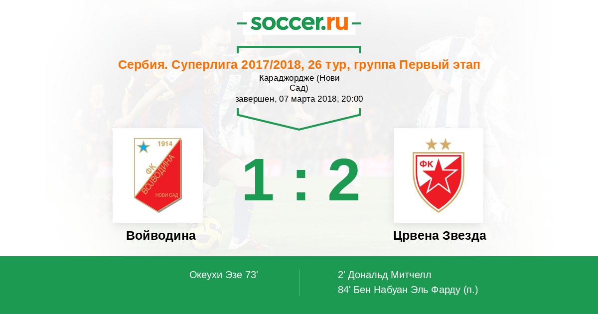 Протокол матча Войводина против Црвена Звезда