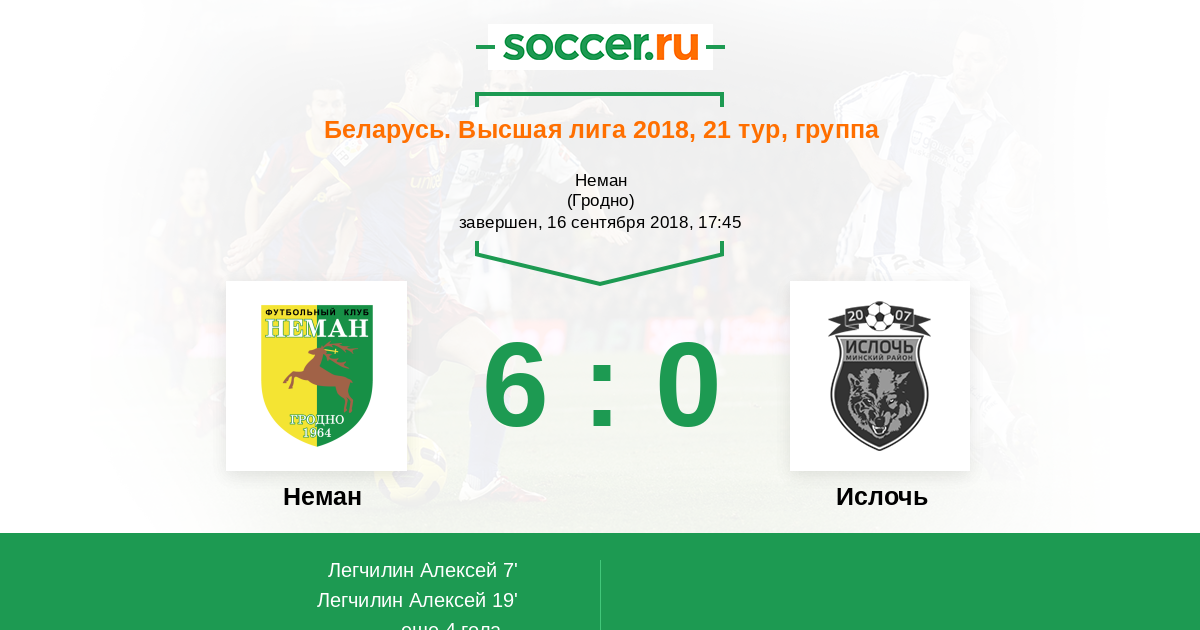 Протокол матча Неман против Ислочь