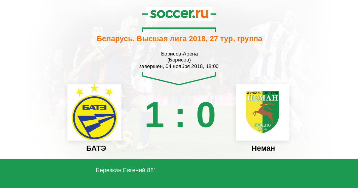 Протокол матча БАТЭ против Неман