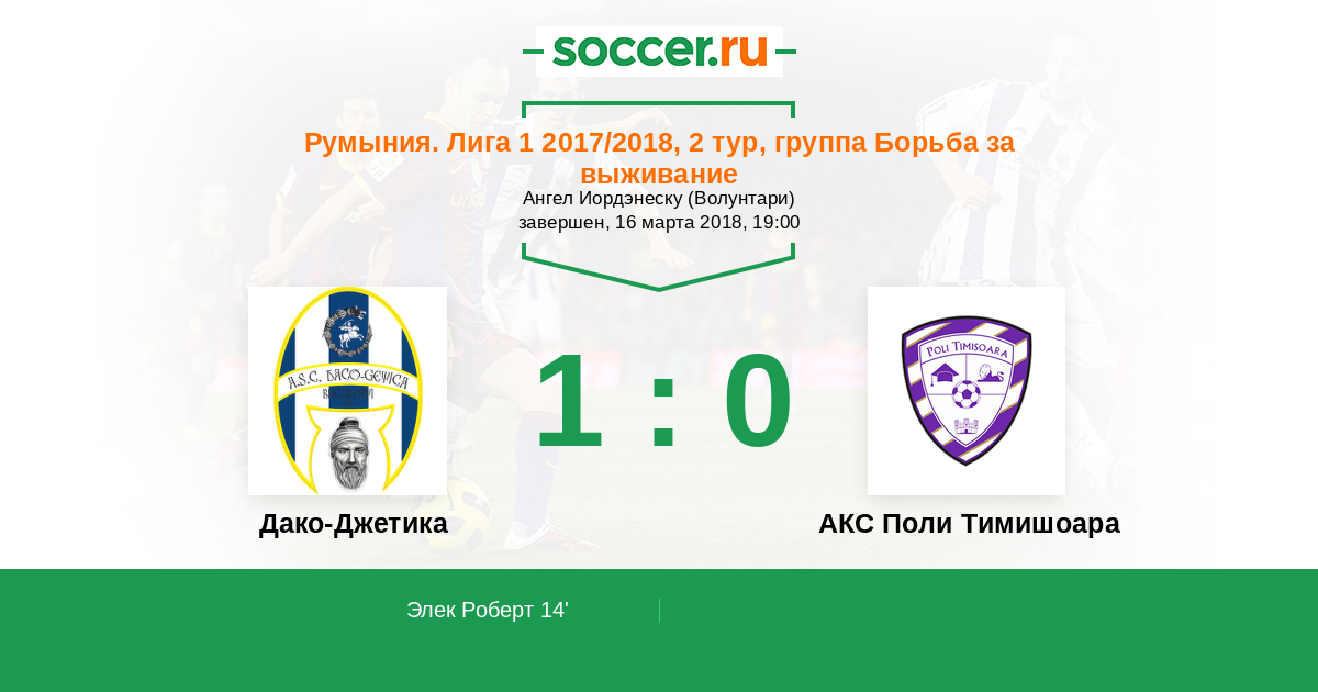 14' (1:0) Элек Роберт (19) (Попеску Даниэль (70))