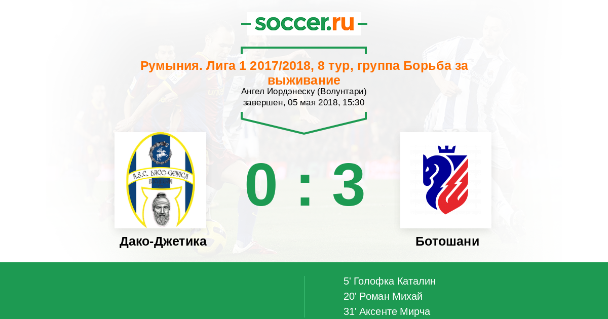 Протокол матча Дако-Джетика против Ботошани