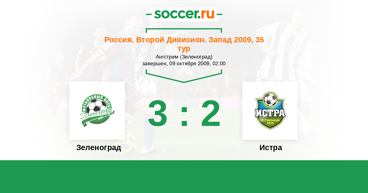 Россия. Вторая лига. Группа 2 28.06.2009 Истра Логотип футбольный клуб Истра 3:1 Логотип футбольный клуб Зеленоград (Москва) Зеленоград