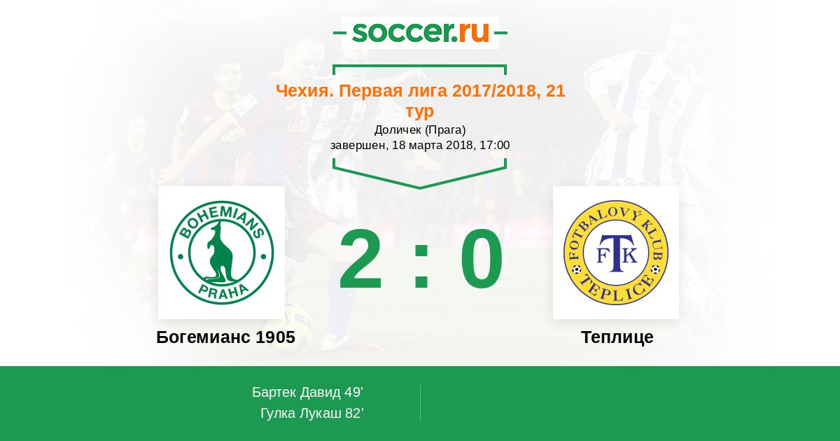 Протокол матча Богемианс 1905 против Теплице
