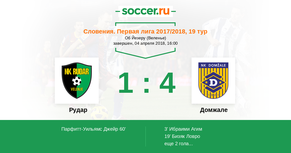 Протокол матча Рудар против Домжале
