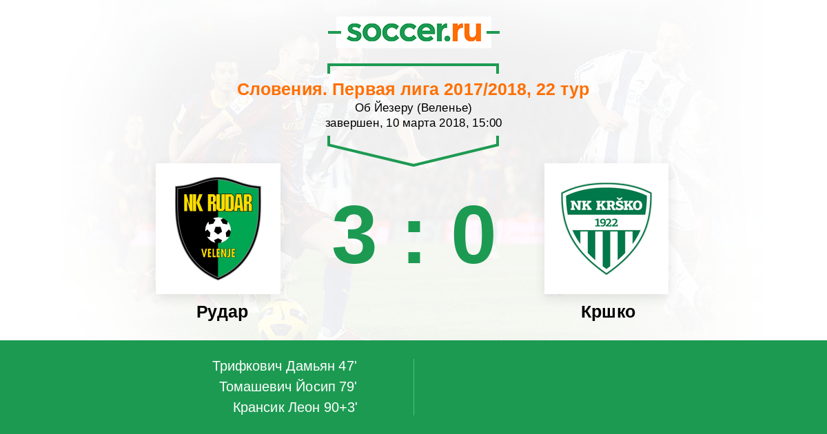 Протокол матча Рудар против Кршко