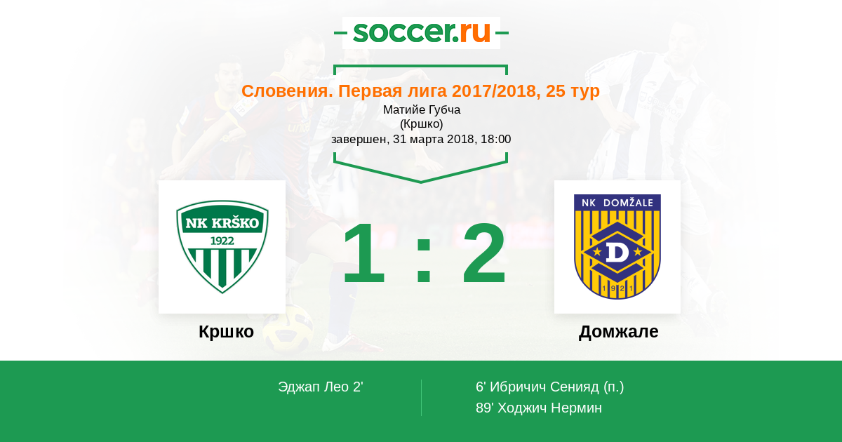 Протокол матча Кршко против Домжале