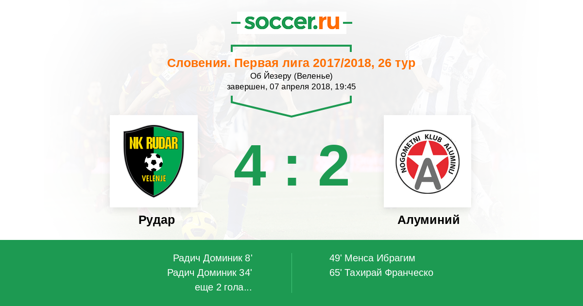 Протокол матча Рудар против Алуминий