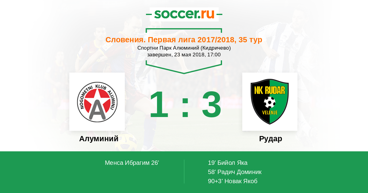 Протокол матча Алуминий против Рудар