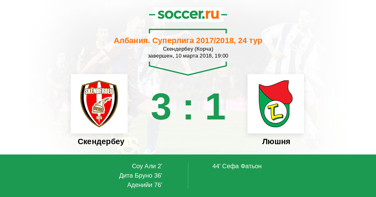 Протокол матча Скендербеу против Люшня