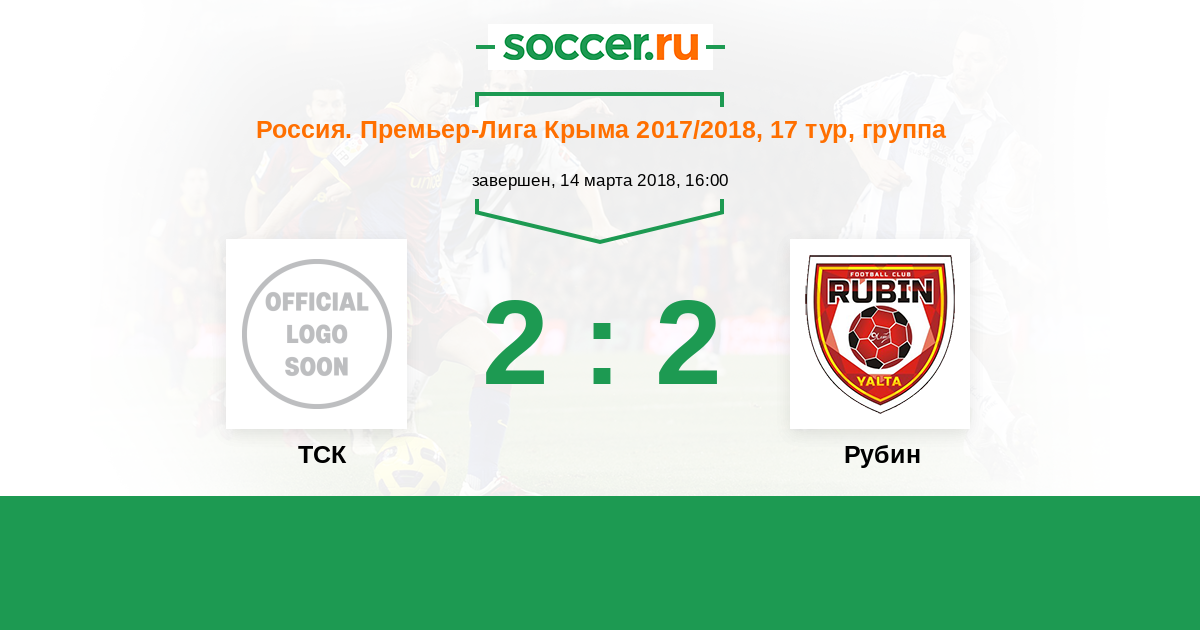 Россия. Премьер-Лига Крыма 15.04.2017 ТСК Логотип футбольный клуб ТСК (Симферополь) 0:2 Логотип футбольный клуб Рубин (Ялта) Рубин
