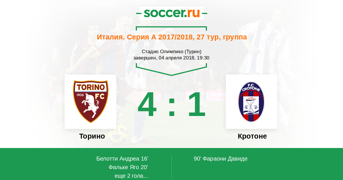68' (4:0) Белотти Андреа (9) (Фальке Яго (14))