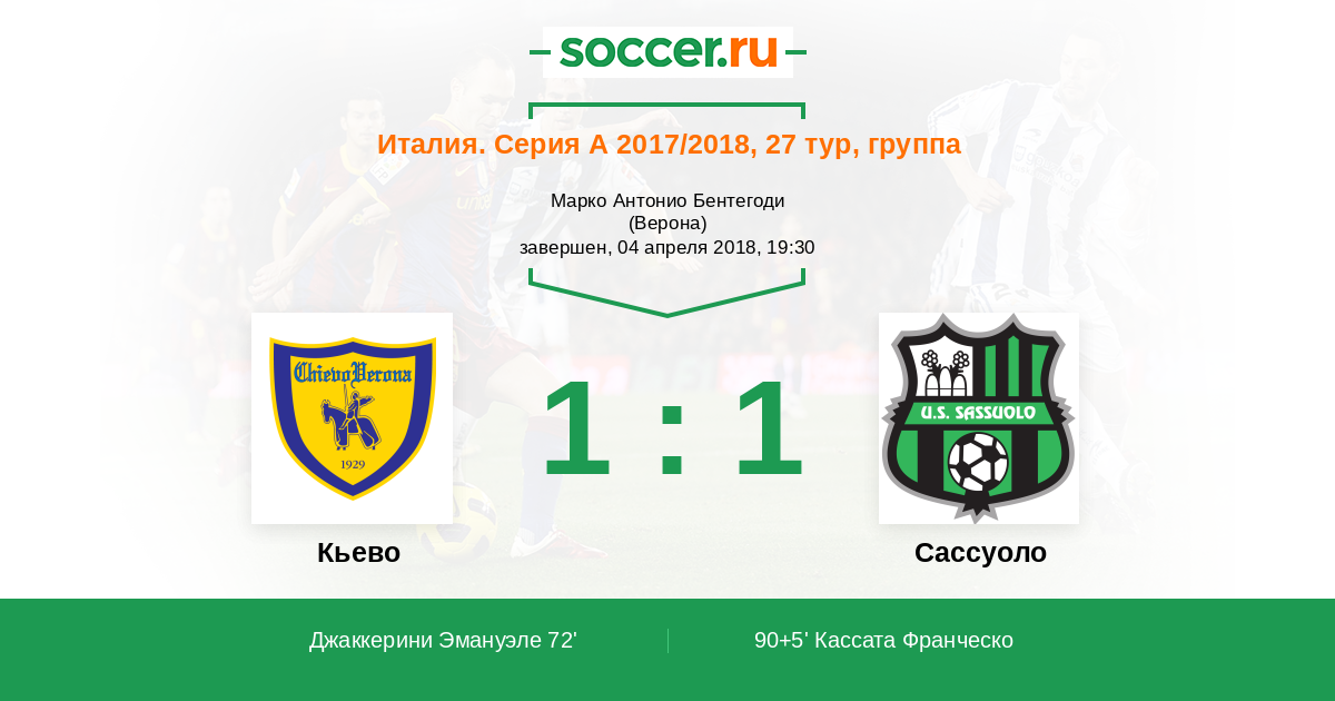 Протокол матча Кьево против Сассуоло