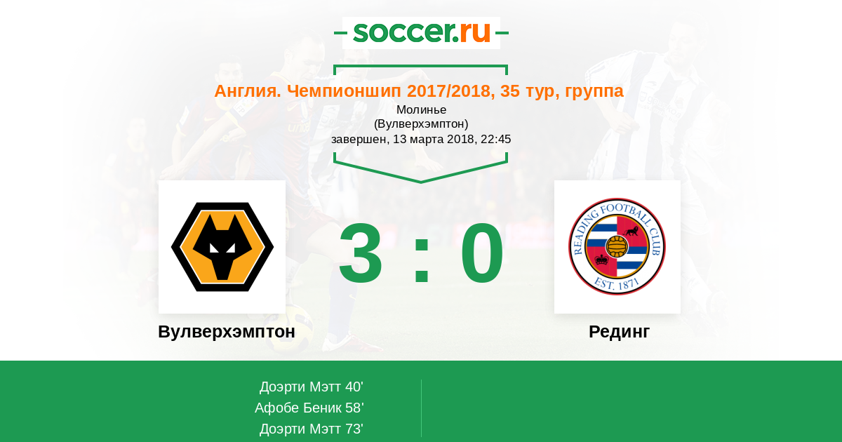 Протокол матча Вулверхэмптон против Рединг