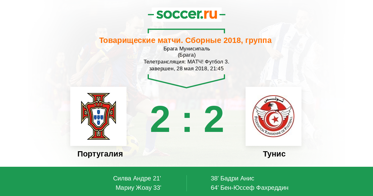 Протокол матча Португалия против Тунис