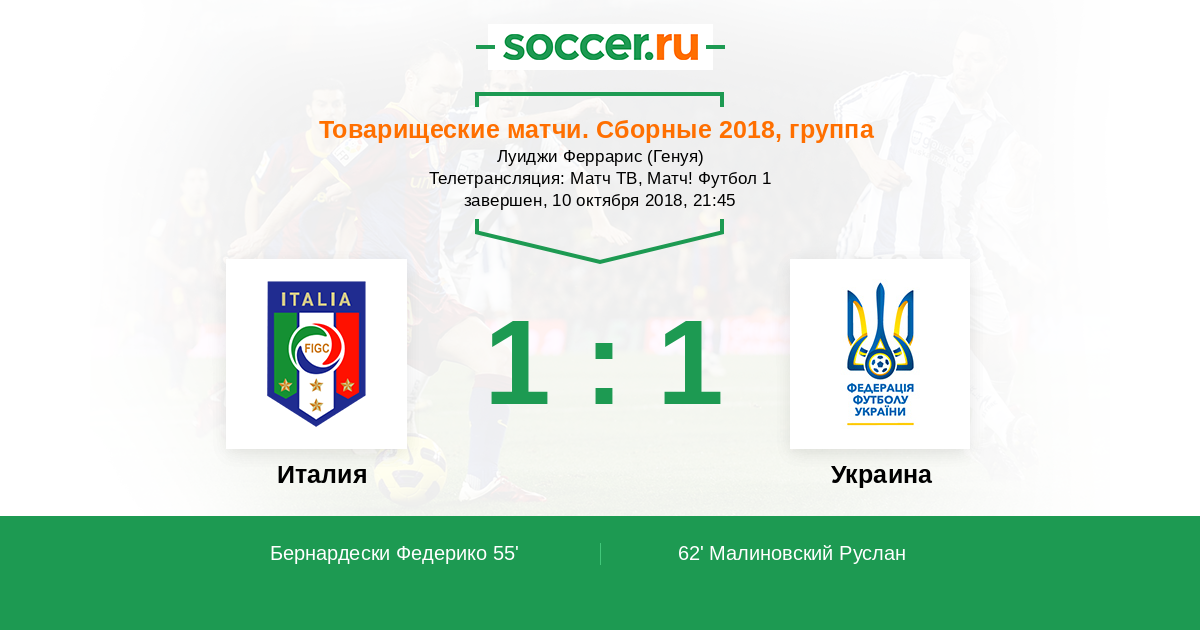 Протокол матча Италия против Украина