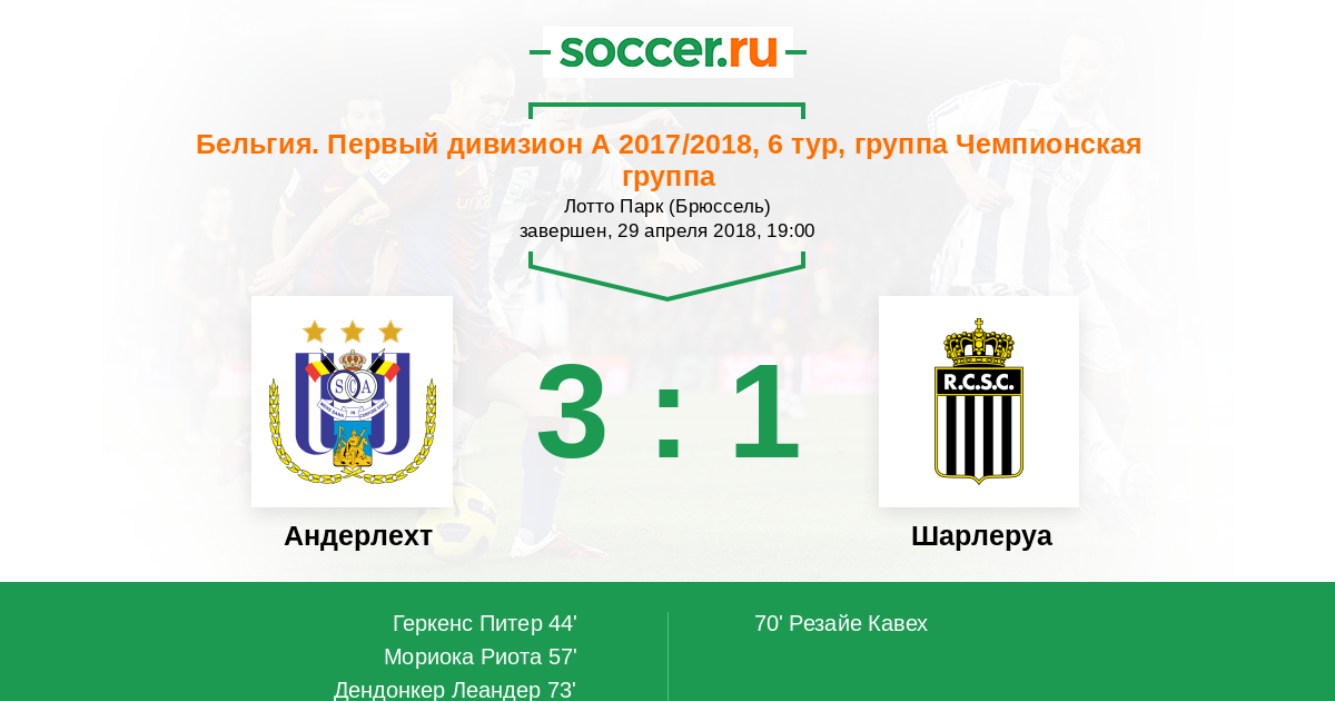 Протокол матча Андерлехт против Шарлеруа