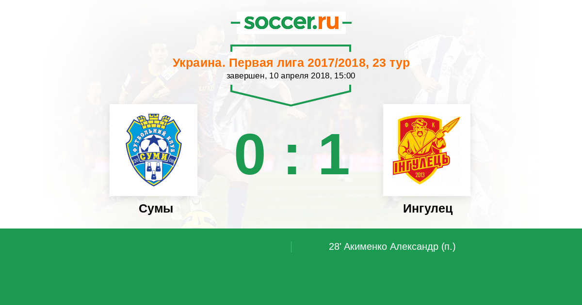 Протокол матча Сумы против Ингулец