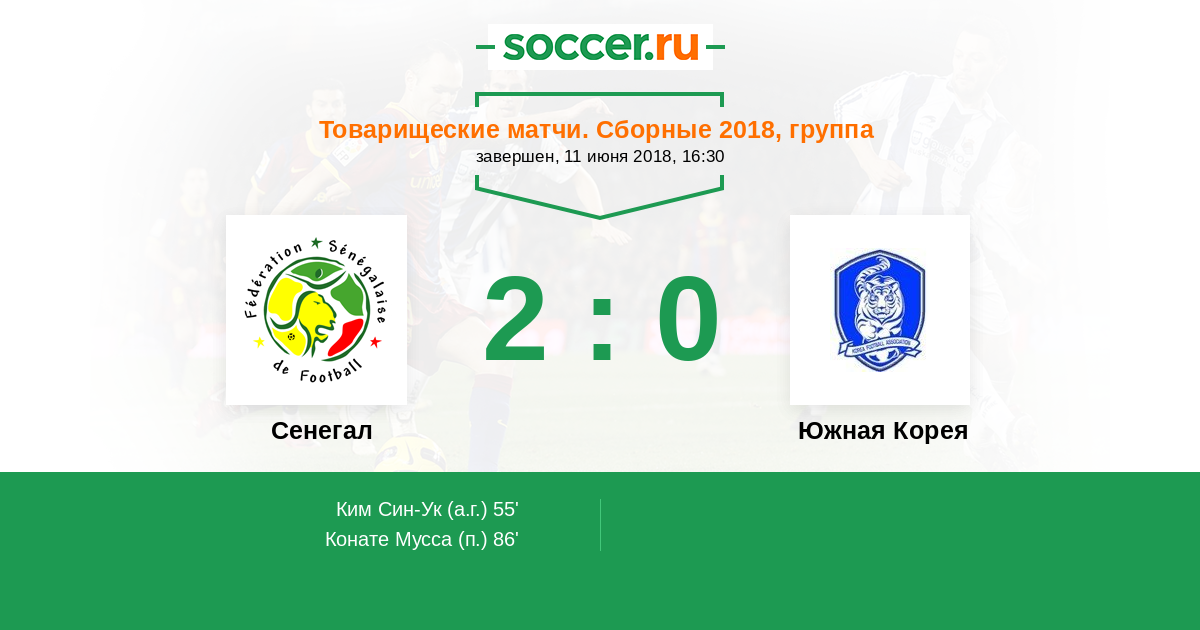 Протокол матча Сенегал против Южная Корея