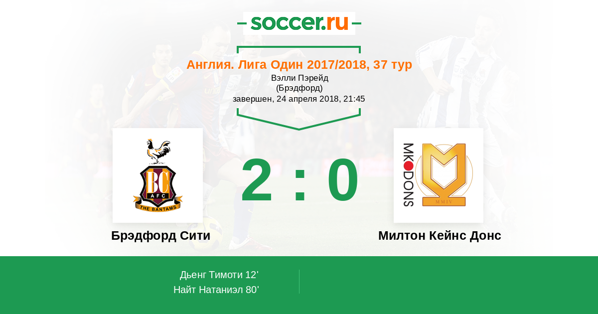 Протокол матча Брэдфорд Сити против Милтон Кейнс Донс