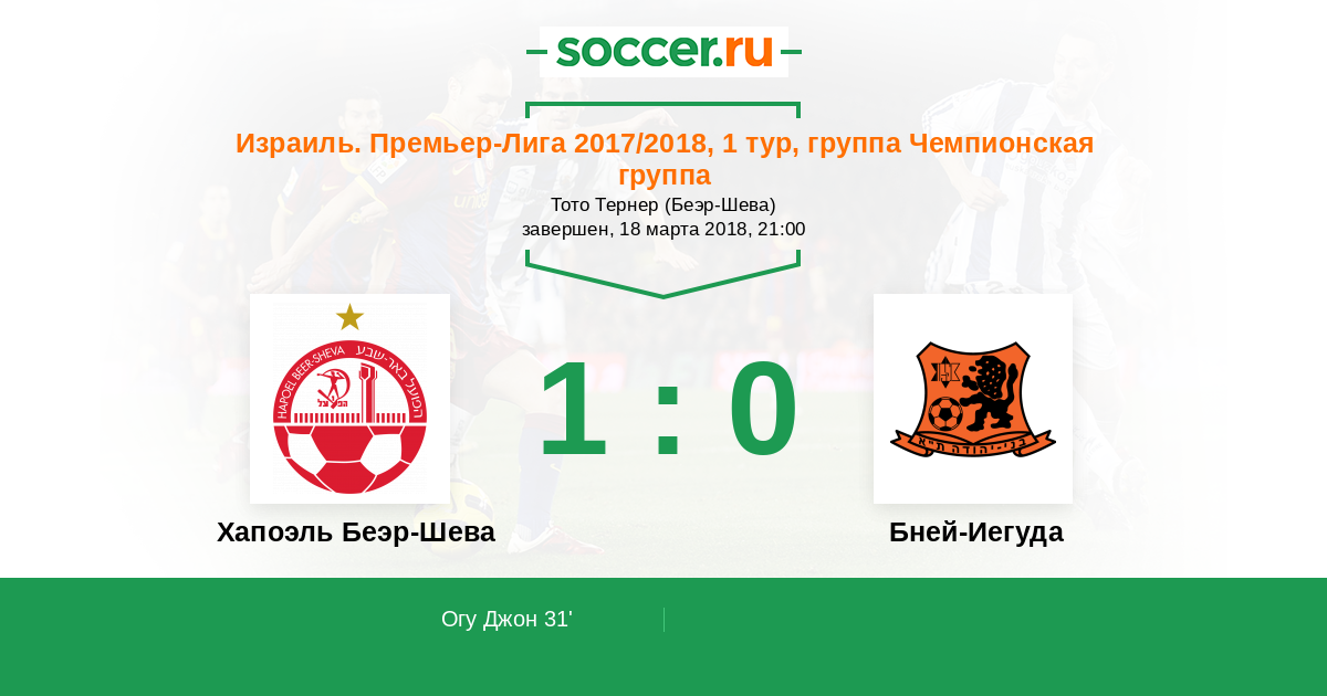 Протокол матча Хапоэль Беэр-Шева против Бней-Иегуда