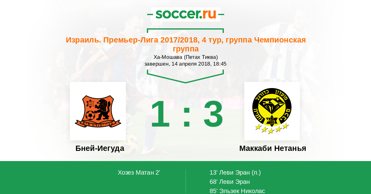 Протокол матча Бней-Иегуда против Маккаби Нетанья