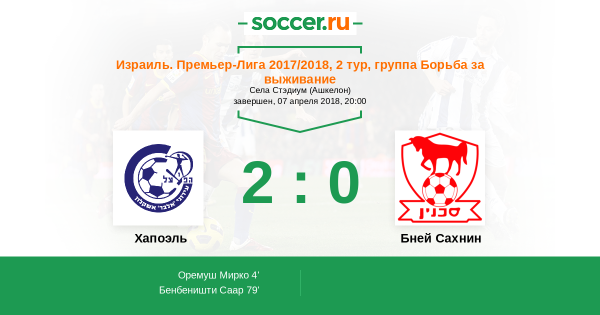 Протокол матча Хапоэль против Бней Сахнин