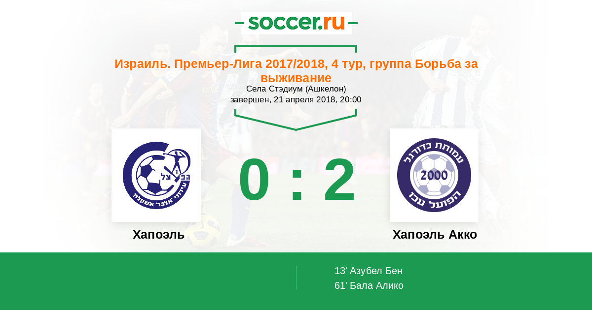 Протокол матча Хапоэль против Хапоэль Акко