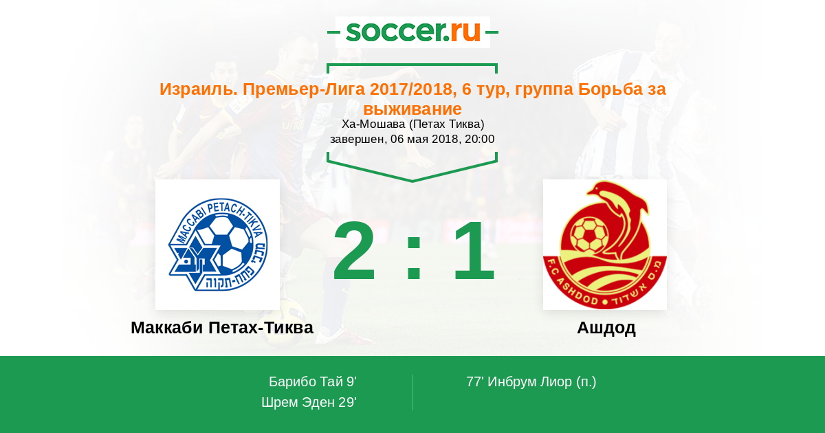 Протокол матча Маккаби Петах-Тиква против Ашдод