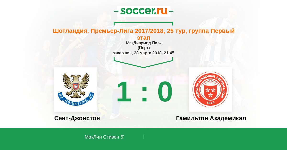 Протокол матча Сент-Джонстон против Гамильтон Академикал